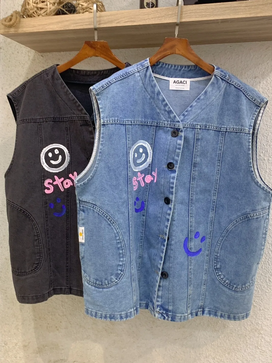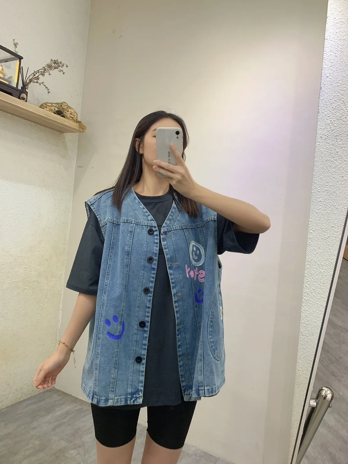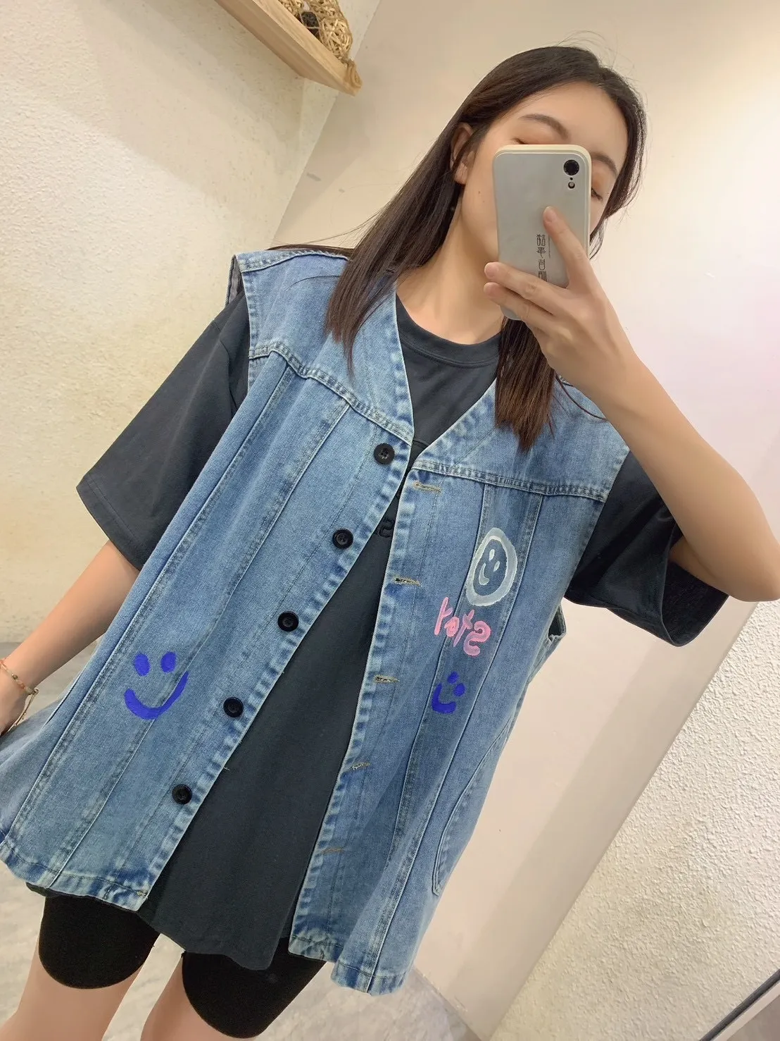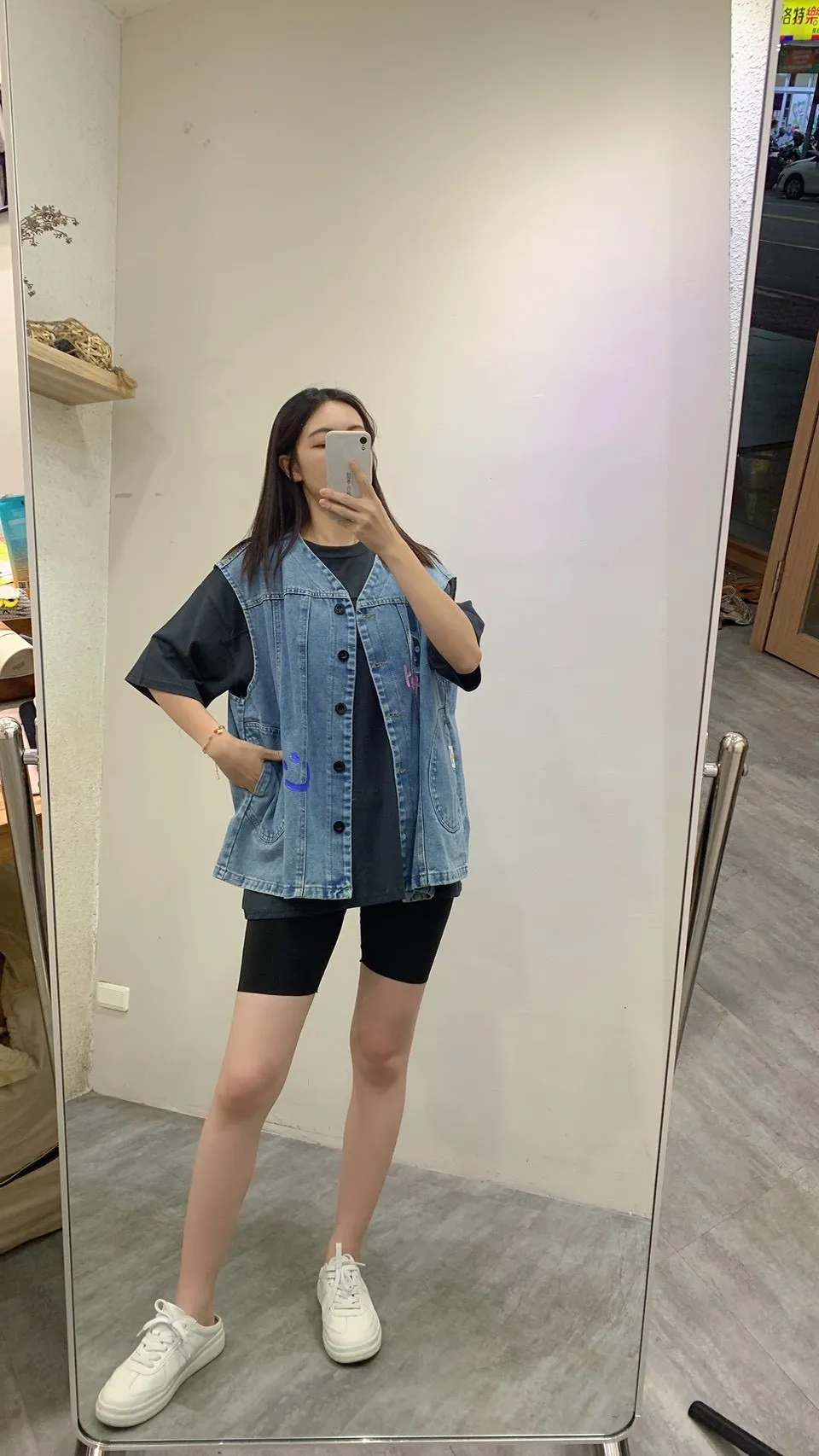 4626.塗鴉笑臉牛仔背心