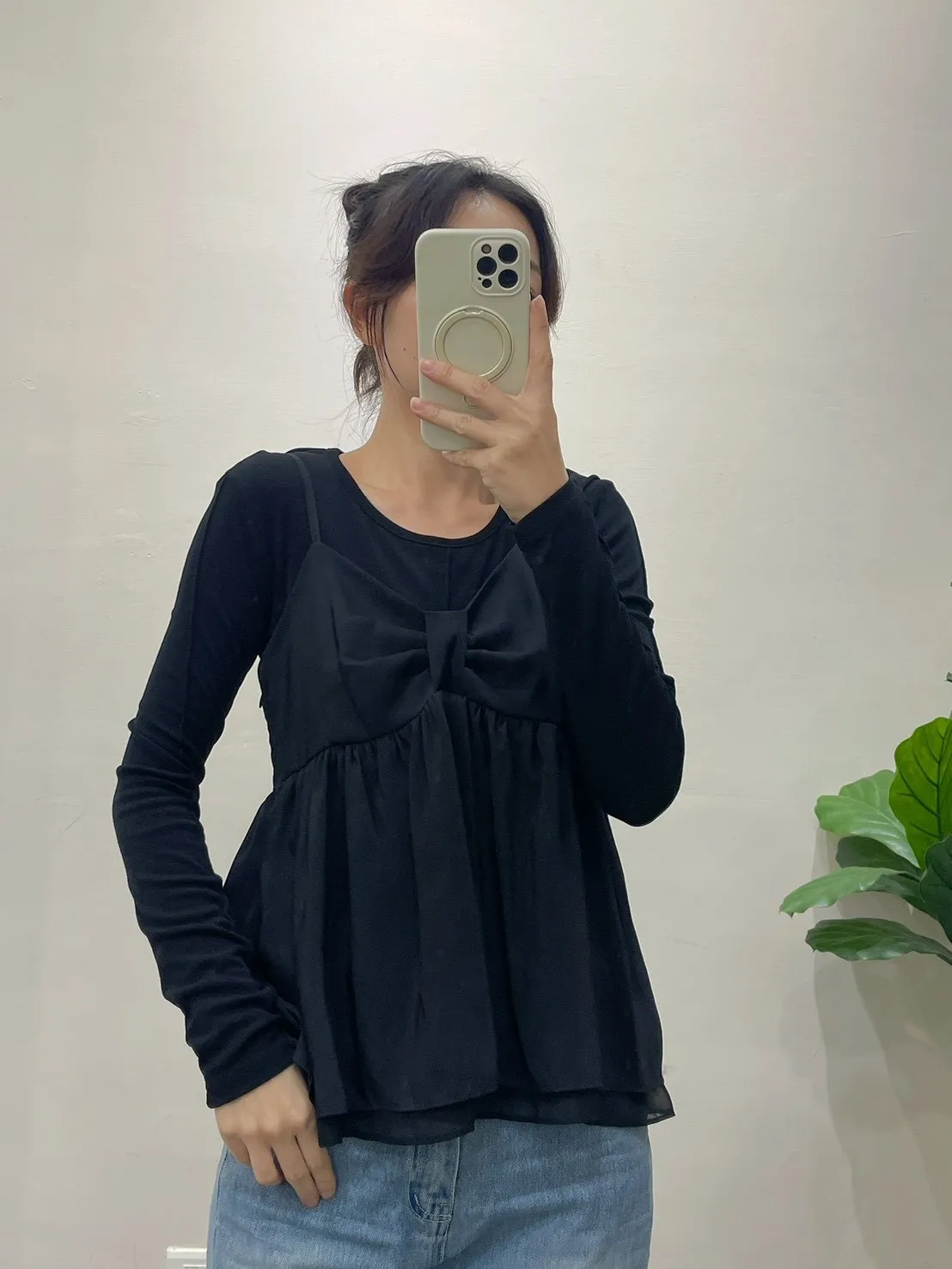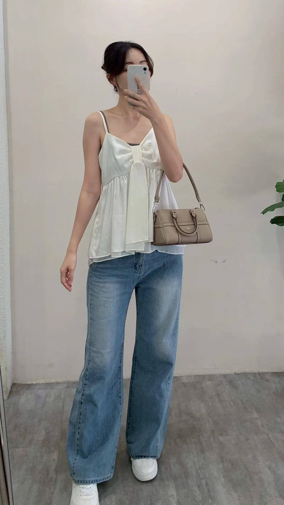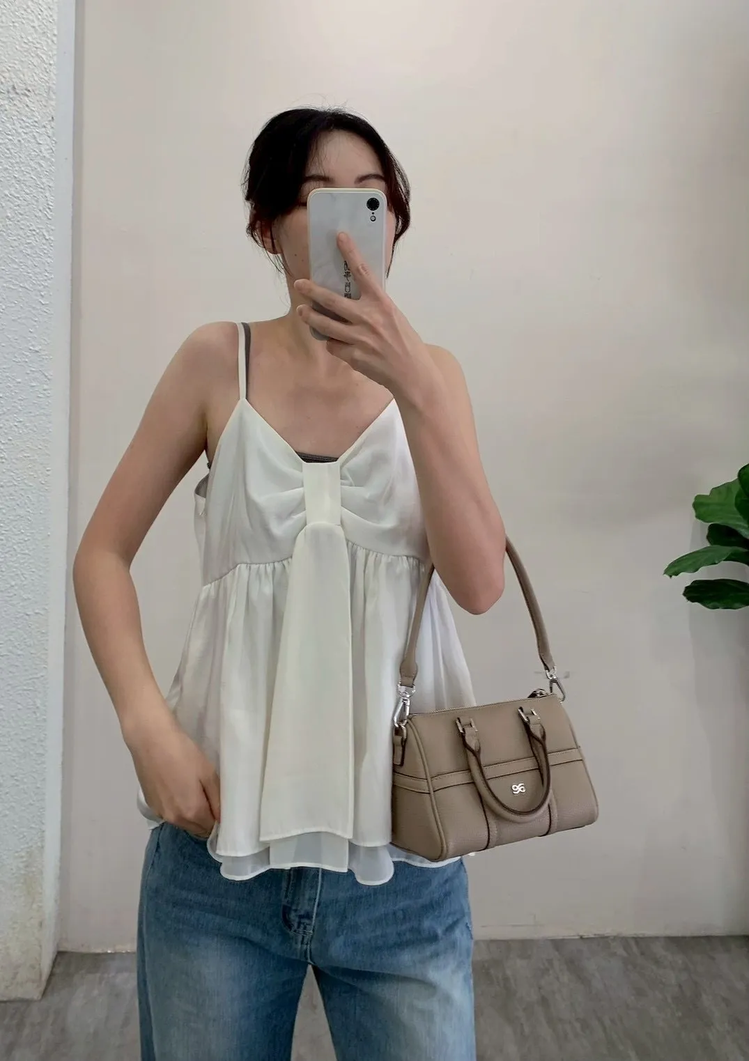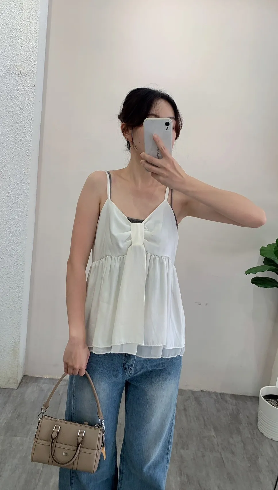 4605.細肩扭結拚紗背心
